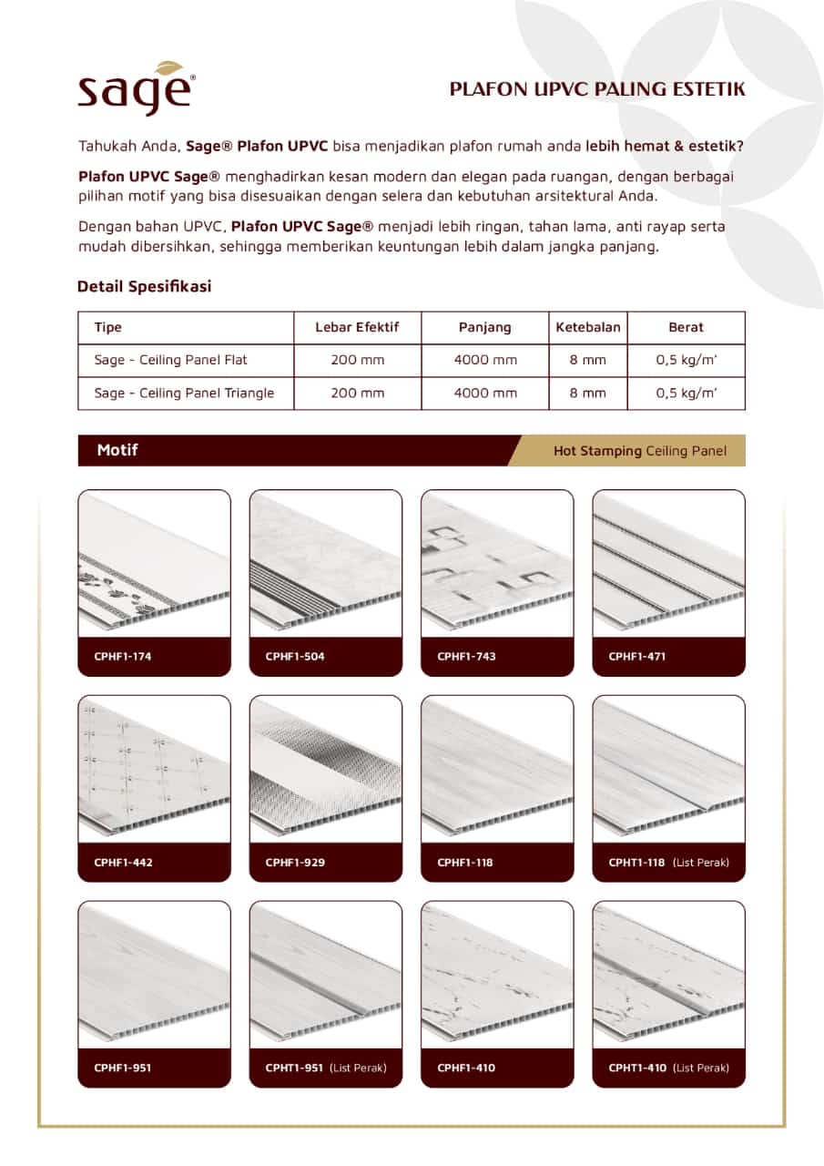 ukuran plafon upvc sage